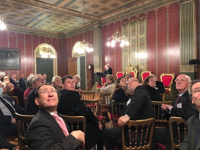 Over seventy members and their guests filled the Throne Room for the first gathering of the Society since the beginning of the pandemic. There was a good atmosphere as old friends greeted each other.